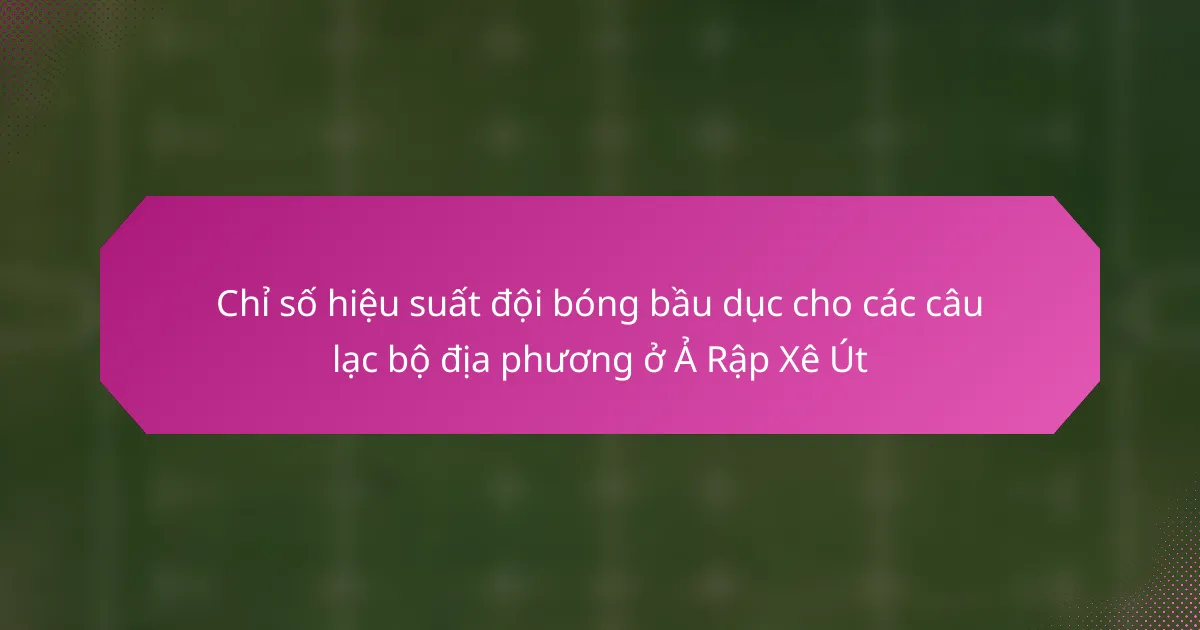 Các chỉ số hiệu suất chính cho các đội rugby tại Ả Rập Xê Út bao gồm tỷ lệ thắng-thua, thống kê cầu thủ, sự gắn kết của đội, tiêu chuẩn thể lực và hiệu quả chiến lược thi đấu. Những chỉ số này cung cấp cái nhìn sâu sắc về hiệu suất tổng thể của đội và các lĩnh vực cần cải thiện, điều này rất cần thiết cho các câu lạc bộ địa phương nhằm nâng cao lợi thế cạnh tranh của họ.